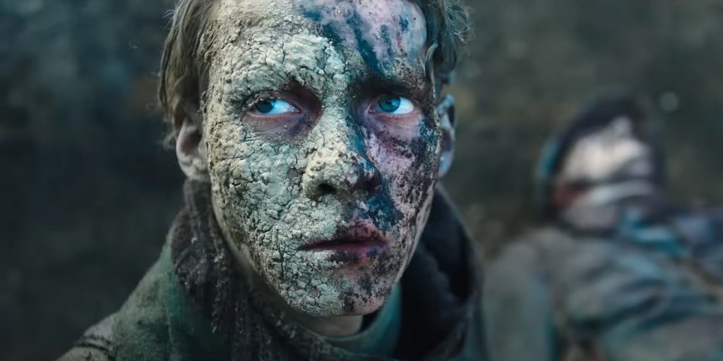 Tim O’Brien said, “If a story seems moral, do not believe it. If at the end of a war story you feel uplifted, or if you feel that some small bit of rectitude has been salvaged from the larger waste, then you have been made the victim of a very old and terrible lie.” This is the exact sense of despondency All Quiet on the Western Front captures and why it is such a grim watch. Unlike Sam Mendes’ “1917”, which is arguably the most well-known cinematic World War I tale, the protagonist does not succeed on his mission. Quite the opposite actually… for two hours and thirty minutes we follow Paul Bäumer (excellently played by Felix Kammerer): a naïve, patriotic teenager sold a dream of heroism and valour if he serves his country during battle. He enlists himself into the German Army only to have, what he thought, would be an exciting expedition to Paris, turn into a treacherous odyssey for survival. Paul endures. He’s fighting a losing battle, his sole objective being to make it home alive. As an audience, we endure with him. There is nothing rewarding in watching All Quiet on the Western Front, Berger does not sugar-coat. The shots are simply horrifying: mangled bodies, stray limbs, massacred troops. But that’s the point: it’s an anti-war film.