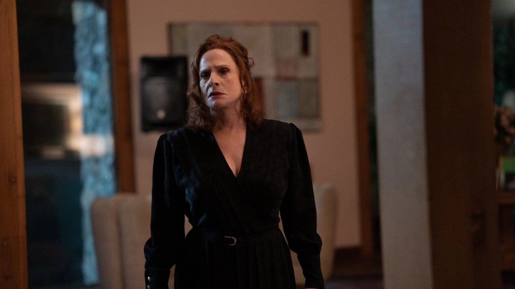 Fate and free-will (or lack of) play a major part in the universe Beau inhabits. Despite being a story of catastrophe, the tragedy inevitably becomes hilarious because the characters are simply victims to the world they inhabit, their choices are meaningless and this is farcical to watch. A middle-aged man, pumped full of medication prescribed by his therapist, with an infantile psyche that means he can barely string a sentence together, it’s clear that this story won’t end well for Beau. Phoenix’s expression of confused pain and zonked anxiety can be self-indulgent at times, but Beau is the least complex of Aster’s protagonists, so this is unsurprising. When disaster strikes, we see the same reaction from Beau- he remains confused and defeated, cartoonish at best. This isn’t to say Phoenix’s performance isn’t exciting, in a non-naturalistic setting his choice must be other worldly, and his perplexed expression is revealing of the under-developed child he truly is. It’s only in the final Act, Phoenix gifts us with a ferocious performance and complexity of character. When Beau eventually encounters his mother (exquisitely played by Patti LuPone), he becomes equally as dangerous to her as he desires her love. The air between them is loaded and, as the space encloses, it becomes unclear as to whether they will embrace or brawl.
